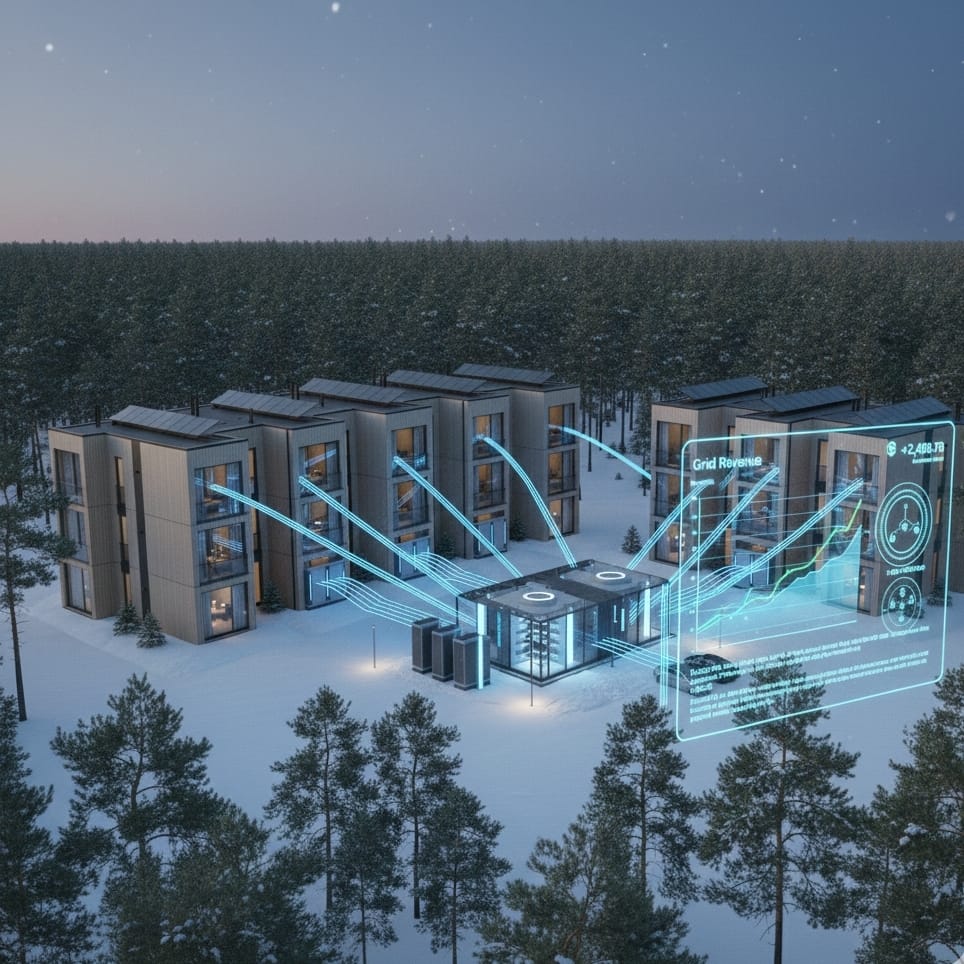 Sustainable, high-insulation Finnish wood modules with integrated solar skins.